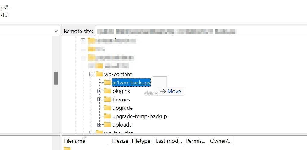 2.พอได้ไฟล์แล้วก้นำไปวางที่ wp-content จะเจอโฟลเดอร์ที่ชื่อว่า ai1wm วางไฟล์